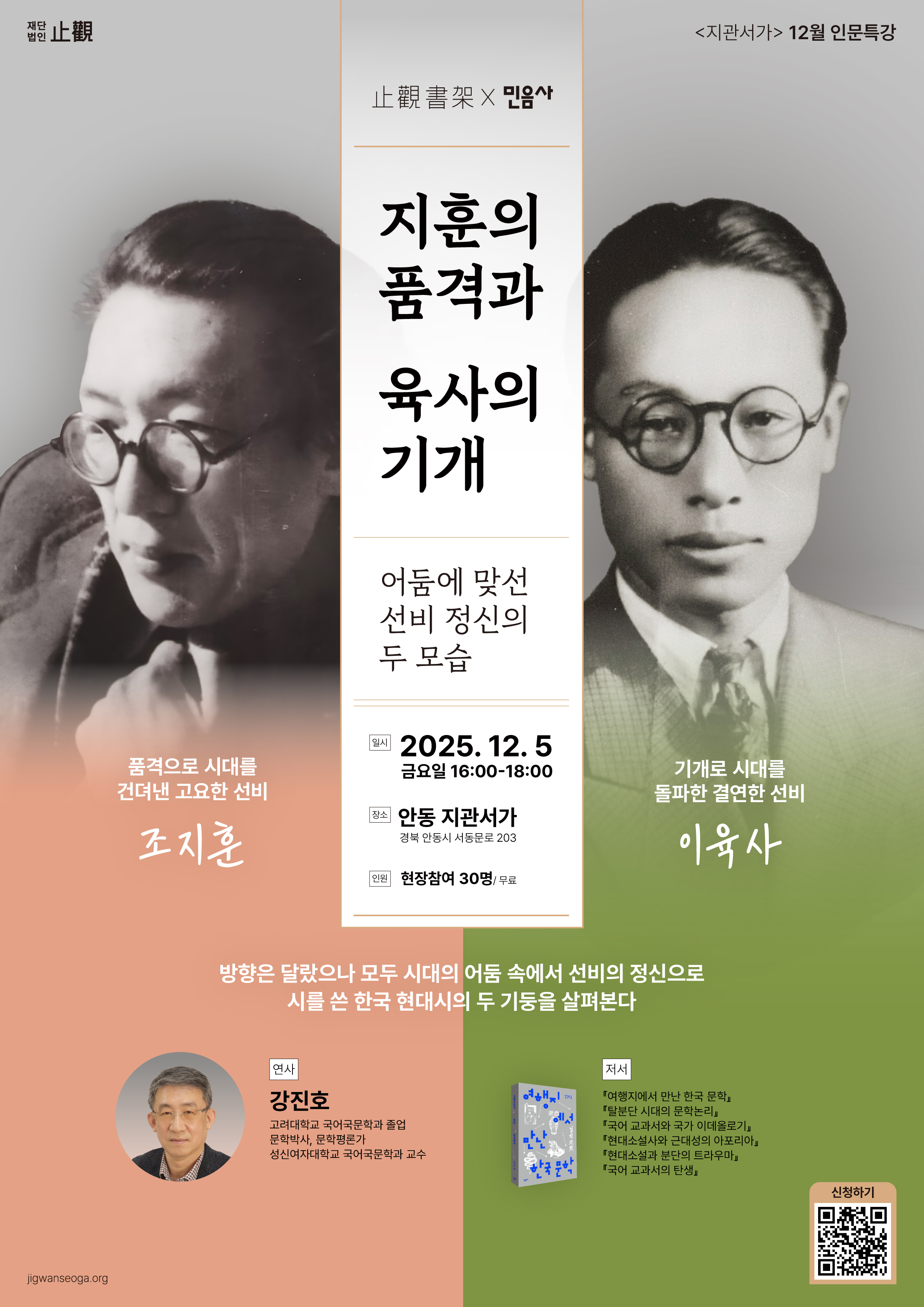 🏫 지관서가 인문특강 《지훈의 품격과 육사의 기개- 어둠에 맞선 선비 정신의 두 모습》 |