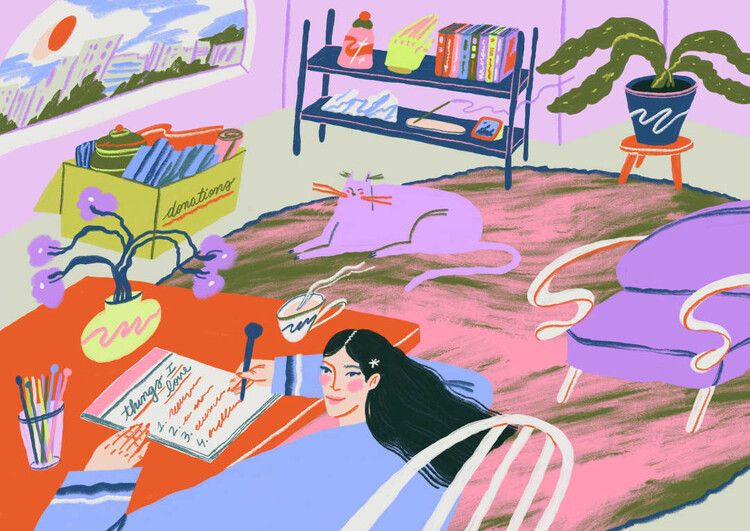 침대가 있다는 것, 하루를 버틸 에너지가 있다는 것을 감사해 보세요. - 할 일 목록 대신, 하루를 즐겁게 해 줄 내가 가진 것들(관계, 자원, 특성, 물질 등)을 적어보세요.
